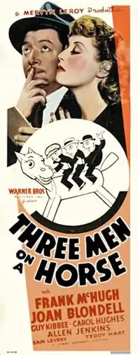 Three Men on a Horse is a 1936 American comedy film directed and produced by Mervyn LeRoy, adapted from the Broadway play of the same name written by George Abbott and John Cecil Holm. A mild-mannered greeting card poet has the uncanny ability to pick winners in horse races.