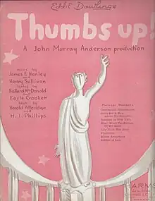 Thumbs Up! is a musical revue in two acts, with book by H. I. Phillips, Harold Atteridge, and Alan Baxter. The show had songs with lyrics by Ballard MacDonald and Earle Crooker and music by James F. Hanley and Henry Sullivan. Additional lyrics by Karl Stark, Ira Gershwin, John Murray Anderson, Irving Caesar, Jean Herbert, and Vernon Duke and additional music by Vernon Duke, Gerald Marks, and Steve Child. The show was produced by Eddie Dowling at the St. James Theatre. The revue opened on December 27, 1934.[1]