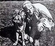 Thunder was born in Stuttgart, Germany in 1921.[1][2] Little is known about the German Shepherd's journey to the United States or how Frank Foster Davis—the dog's owner and trainer—acquired the animal. It is known that Davis, a native of Louisville, Kentucky, moved to California prior to 1921.[6] There, at Altadena, he developed the largest kennel for German Shepherds on the Pacific Coast, and it is where Thunder resided during and after his screen career.[7] News items in 1926 issues of Motion Picture News and Fox Folks did report that Thunder was registered with the American Kennel Club under the name "Beneva Tillo Von Riedekenberg" and that his pedigree papers traced his bloodline in Germany back 38 generations.[1][8] Thunder by 1923 also had a connection to a film star through his "litter brother" named "Thor", who that year was purchased from Davis by comedian Buster Keaton.[9]