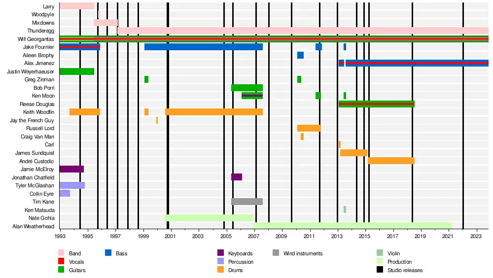| Past members | Jake Fournier Keith Woodfin Bob Porri Tim Kane Jonathan Chatfield Nathan Gohla Ken Moon Greg "Action" Zinman Aileen Brophy Russell Lord Ken Matsuda James Sundquist |