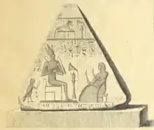 - Freestanding Block Stela (Cairo JdE 89624). A four sided stela showing Tia adoring Re-Horakhti, Atum, Osiris and Sokar. The stela mentions Ramesses II.[3] The stela comes from the Kefr el Gebel Chapel.[9]
