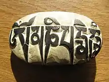 A chab chab is a piece of jewellery which wealthy Tibetan ladies attached to their clothes beneath the right shoulder.