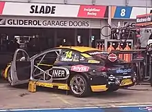 Early in 2009, Slade was announced as the replacement driver for the retiring Paul Morris at his eponymous team to graduate into V8 Supercars.[6] The drive was once again backed by Rosenberg.[2] Driving a Holden Commodore (VE) sponsored by Supercheap Auto, Slade finished 23rd in the championship.