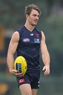 After playing nineteen matches for the year, he helped the club secure the minor premiership and his performance in the preliminary final—which garnered a game-high three goals—saw the club qualify for the grand final for the first time since 1999.[7] Although Casey headed into the grand final as heavy favourites and he kicked three goals in the match, Casey ultimately lost the grand final to Footscray by thirty-one points at Etihad Stadium.[8][9] His performances during the year led to state honours when he represented Victoria against South Australia[10] and he was named as the centre half-forward in the VFL team of the year.[11] At the conclusion of the season, he was considered a "roughie" to be recruited in the upcoming AFL draft by Cranbourne Leader journalist, Paul Amy, due to his breakout season in the VFL.[12]