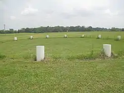 The oldest known timber circles in North American archaeology were found at Poverty Point in 2009 by archaeologists from the University of Louisiana at Monroe and Mississippi State University, led by Poverty Point station archaeologist Dr. Diana Greenlee. They discovered evidence in the 37.5 acres (15.2 ha) plaza area for multiple wooden post circular structures ranging from 82 feet (25 m) to 206 feet (63 m) in diameter; built during the earliest habitation of the site circa 2400 BCE. The site now has a ring of concrete posts marking the position of one of the circles.[7][8][9]