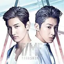 Time (stylized as TIME) is the sixth Japanese studio album (twelfth overall) by South Korean pop duo Tohoshinki, released by Avex Trax on March 6, 2013. The record was released in four physical versions, each with a theme cover – Version A (Past), a CD+DVD version with music videos; Version B (Present), another CD+DVD version with off-shot movies and live performances; Version C (Future), a CD only version with two bonus tracks; and Version D, a Bigeast fan club limited edition. Musically, Time is primarily an electropop album, with dubstep, electronic dance music, and R&B influences.