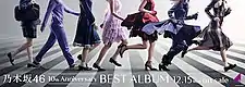 The album's promotional poster shows six girls who show only the lower body walking and running with different costumes: from left to right student uniform, the group's purple tracksuit, "Kimi no Na wa Kibō" navy school uniform, "Kizuitara Kataomoi" purple dress, "Sayonara no Imi" red dress from 67th NHK Kōhaku Uta Gassen, "Influencer" violet outfit from 59th Japan Record Awards, and the group's "Kimi ni Shikarareta" current uniform, subtitled with the text "乃木坂46 10th Anniversary BEST ALBUM 12.15 Wed on sale", that shows 10-year reminiscence of the group.[13][14]