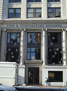 The Time and Temperature Building, originally known as the Chapman Building, and officially 477 Congress Street, is a 14-story office building in downtown Portland, Maine. The building is named after a large three-sided four-element eggcrate display screen on the roof that flashes the local time and temperature. It was built in 1924 as a 12-story building, with Maine's first indoor shopping center on its ground floor.[3][4] It sits next to the 10-story Fidelity Trust Building.[4] Until the 1970s, these buildings were Portland's only skyscrapers.[5]