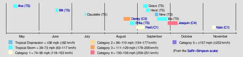 | Timeline of the 2015 Atlantic hurricane season | |||||
