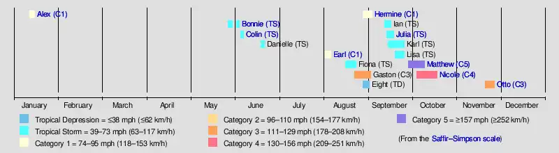 | Timeline of the 2016 Atlantic hurricane season | |||||