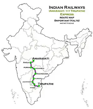 Tirupati–Amravati Express is a Superfast train belonging to Indian Railways connecting Tirupati in Andhra Pradesh with Amravati in Maharashtra.