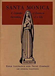 Eugene Morahan's New Deal sculpture Santa Monica appears on the cover of Title Insurance and Trust Company's history of Santa Monica, California