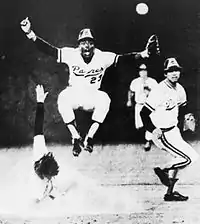 Fuentes played baseball with elan, style and flair.[7] He pioneered the use of headbands, sometimes applying them on the outside of his baseball cap.[8] He would approach the plate holding his bat by the barrel, tap it handle-first off the plate, flip it into the air and catch it by the handle, ready to hit. He was called "one of the most renowned hot dogs in baseball history" in Sparky Lyle's 1979 book The Bronx Zoo.[9] Elan and flair was not always accepted by staid ballplayers. Pitchers would knock him down with inside pitches for no apparent reason. After one such event, he was quoted as saying, "They shouldn't throw at me. I'm the father of five or six kids."[10]