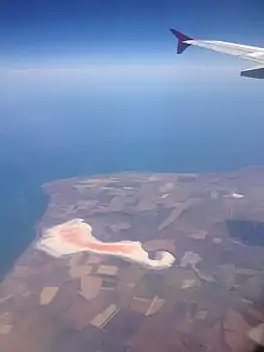 Tobechytske Lake (Russian: Тобечи́кское о́зеро, Ukrainian: Тобечикське озеро, Crimean Tatar: Тöbeçik gölü) is a salt lake in the south of the Kerch Peninsula in the Lenine Raion district of Crimea. The lake belongs to the Kerch group of lakes.[1]