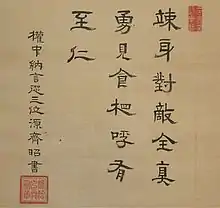 Nariaki was the 3rd son of Tokugawa Harutoshi, the seventh-generation daimyō of Mito. The family headship first passed to Harutoshi's eldest son Narinobu, before being passed on to Nariaki in 1829.[1] Nariaki was also leader of the Jōi (expel the barbarian) party and made a Bakufu adviser on national defence.[2] His childhood name was Torasaburo (虎三郎) later changed to Keisaburo (敬三郎).