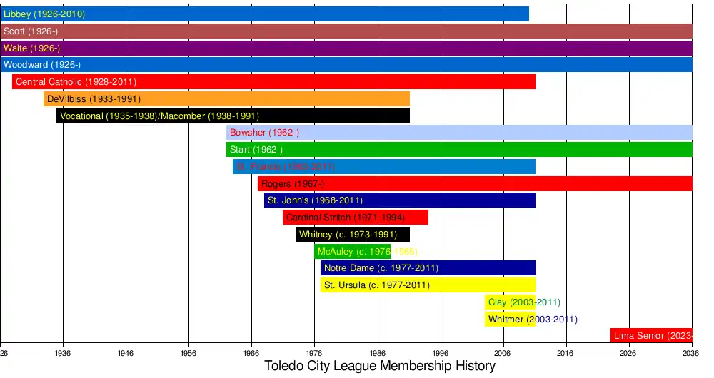 The Toledo City League is an Ohio High School Athletic Association (OHSAA) high school athletic conference that was formed in 1926 and comprises the six high schools in Toledo that are from Toledo Public Schools, along with one high school from Lima, Ohio.
