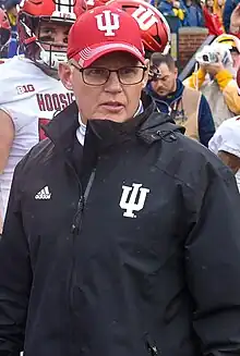 Thomas E. Allen (born March 14, 1970) is an American college football coach serving as the head coach of the Indiana Hoosiers football team. He was named the 2020 Big Ten Coach of the Year and AFCA Coach of the Year. Allen previously served as the defensive coordinator at Indiana and South Florida. He spent time as an assistant at Ole Miss, Arkansas State, and Drake, among other programs. A native of New Castle, Indiana, Allen also spent six seasons as defensive coordinator and three seasons as the head football coach at Ben Davis High School in Indianapolis.