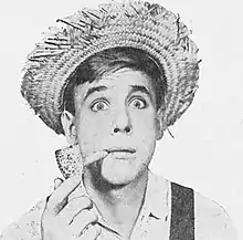 ![]() Tom Sawyer (John Sharpe) puffs on a corncob pipe | |