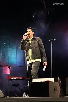 In television, Aguilar hosted the music shows Leña al mono que es de goma on Antena 3 in 1993, and Zona franca, alongside Arancha de Benito, on TVE in 1995.[6] On 40 TV, he hosted Fórmula Weekend alongside Joaquín Luqui in 1999,[7] as well as Los 40 Principales between 2000 and 2005, and the television version of the hitlist show Del 40 al 1 until the channel's closure in 2017.[8] Aguilar then hosted Coca Cola Music Experience on Cuatro.[9]