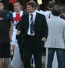 Tony Smith's involvement with British Rugby League began by finishing his playing career in 1996 with a spell at Workington Town in the inaugural Super League season. His initial time at Workington was hampered by Achilles tendon injury suffered two seasons previous, made all the worse by Workington's poor form which saw them relegated to National League One.[5] He also notoriously lived above a Workington fish 'n' chip shop with his wife, commenting "every morning I trudged to training and swore we'd never come back to this country."[5] His most notable on-field contribution was on his début as he helped the club to an 18–18 draw with Halifax Blue Sox, one of only five points that the club secured in 1996 as they finished bottom of Super League. Smith's high bomb led to the side's third try, scored by Wayne Kitchin.