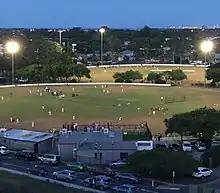 The Toombul playing ground is named Oxenham Park,[10] after Toombul club legend Ron Oxenham. The facility incorporates two fields, the main field Ken Mackay Oval,[11] and the second field La Frantz Oval,[12] named after two more club legends, Ken Mackay and Errold La Frantz,[13] respectively.