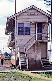 Also associated with signalling and safeworking in the Toowoomba yard is the A signal cabin, taken out of use mid-1993. This cabin possibly dates from the 1920s. The cabin interior is still intact, and includes signal levers, safeworking instruments and Toowoomba yard diagram. Associated with this structure are the now dismantled semaphore signals from the signal gantry.[1]