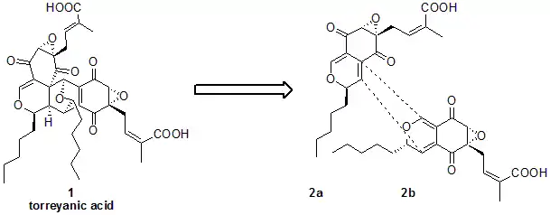 - Li C, Johnson RP, Porco JA (April 2003). "Total synthesis of the quinone epoxide dimer (+)-torreyanic acid: application of a biomimetic oxidation/electrocyclization/Diels-Alder dimerization cascade". Journal of the American Chemical Society. 125 (17): 5095–106. doi:10.1021/ja021396c. PMID 12708860.