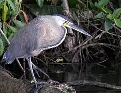The national park's wild life consists of birds, mammals, fungi, ferns, marine life, sea turtles, lakes and rainforest.[10] Tortuguero National Park acts as a refuge to many of these species which are also found in the La Selva Biological Station and Braulio Carrillo National Park. Threatened animals species in the reserve area are: the American crocodile (Crocodylus acutus), Baird's tapir (Tapirus bairdii), marine turtles such as Chelonia mydas and Dermochelys coriacea, the manatee or sea cow (Trichechus manatus) (the northeastern Caribbean wetland is its local feeding and reproduction area) and the tropical gar (Atractosteus tropicus) a living fossil brought under protection by Costa Rican legislation. The park is a breeding ground along the Caribbean coast of Costa Rica for many of the main fishes used in subsistence fishing.[6]
