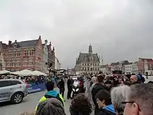 The race starts and finishes in Oudenaarde, 30 km south of Ghent in East Flanders.[2] It is 157.4 km and has a similar finale as the men's Tour of Flanders, with many of the same hills, except for the Koppenberg. The first 90 km wind through the hills of the Zwalm region, before addressing the climbs in the Flemish Ardennes between Geraardsbergen and Oudenaarde in the last 60 km. The final 60 km contain the most iconic climbs, notably the Muur van Geraardsbergen, Oude Kwaremont and Paterberg.[19] The course runs almost entirely in the province of East Flanders. Since 2017, eight kilometres of the trajectory between Geraardsbergen and Ronse run over roads in the Walloon province of Hainaut.[19]