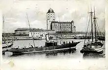 ![]() Vyborg Castle with Tower of St. Olav in the city map of Vyborg (1642) | |