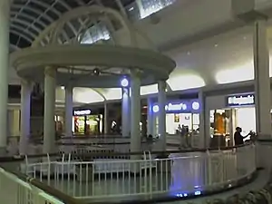 Over the years, stores and attractions were added on to increase traffic in the mall and make it more competitive with other malls in the area. One memorable effort was Gadgets restaurant and arcade. It was a Warner Bros. themed restaurant with animatronic characters performing periodic shows on stage, which opened and closed in the early 1980s. Some of the original stores survived this era but later closed, including Hess Shoes, Loewmeyer's, and Friendly's. The Level 1 center court featured The Garden Cafe and a dandelion fountain at its entrance. The glass elevator was installed between the old escalators. During the 1991 renovation, the fountain was replaced with a smaller one. In 1999, the popular theme restaurant, Rainforest Cafe opened in the mall and was a tenant for the next ten years, closing in January 2009.[5] Bistro Sensations took the place of Garden Cafe in 2000 and has since gone out of business.