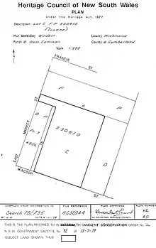 On 8 January 1920 part of lot 7 (15.75 perches) at the corner of Windsor and East Market Street was sold to James Timmins Jr., of Richmond, butcher and a new certificate of title was issued to George Woodhill, then living at Coogee, store keeper, for lot 10 DP 4906 and lot 6 and part of lot 7 (containing Toxana).[18][1]