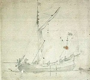 A dogger viewed from before the port beam. c. 1675 by Willem van de Velde the Younger