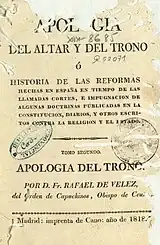 | 1818 | Apologia del altar y del trono[475] | Rafael de Veléz | |||||||||
