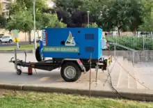 A trailer is an unpowered vehicle towed by a powered vehicle. It is commonly used for the transport of goods and materials.