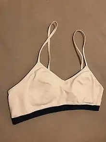 A training bra (also trainer bra, starter bra, or first bra) is a lightweight brassiere designed for girls who have begun to develop breasts, at Tanner stage II and III. The training bra is intended to be worn during puberty when the breasts are not yet large enough to fit a standard-sized bra. Training bras often provide minimal or no support, and may serve aesthetic purposes to fulfill cultural norms and local beauty standards.