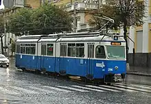 The Vinnytsia Tramway (Ukrainian: Вінницький Трамвай, translit.: Vinnytskyi Tramvai) network is the part of the public transportation system that since 1913 serves Vinnytsia, the administrative center of the Vinnytsia Oblast, Ukraine. The tram system has a narrow rail gauge of 1,000 mm (3 ft 3+3⁄8 in) that only exists in Ukraine in the cities of Lviv, Zhytomyr and Yevpatoria, as well as Vinnytsia. The system currently consists of 21.2 km of tracks.[1]