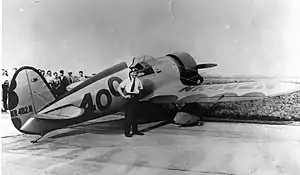 The Model R series set numerous speed records for both pylon racing and cross-country flying, and were the most advanced aircraft of the day, by far outpacing anything that even the military could offer.[5] On September 2, 1929, Doug Davis entered the "Mystery Ship" in the Thompson Cup Race. Davis won at a speed of 194.9 mph (one lap flown at 208.69 mph), beating the military entries, even recircling one of the pylons twice. Davis missed the second pylon of the course, circled back and while circling it again blacked out momentarily. Not knowing if he had missed the pylon again, Davis went around one more time, then continued on to win the race.[6] This was the first time in the history of air racing that a civilian racer had outperformed a military aircraft.[7]