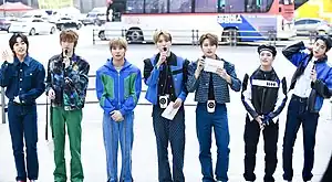 ![]() Trendz busking in Gangnam, April 2023 From left: Havit, ra.L, Leon, Hankook, Eunil, Yechan, Yoonwoo | |