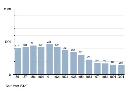 - "Superficie di Comuni Province e Regioni italiane al 9 ottobre 2011". Italian National Institute of Statistics. Retrieved 16 March 2019.