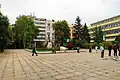 In the socialist period, the square starts to take the shape of today, trees included. The former Faculty of Orthodox Theology is rebuilt as Faculty of Economics, while a new building on the west side of the square hosts the Svjetlost (Light) publishing house (1973). A socialist monument is erected at its centre in 1977,[4] coupled in the early 1980s with a series of busts representing Bosnian-Herzegovinian writers: Veselin Masleša, Ivo Andrić, Rodoljub Čolaković, Branko Ćopić, Mak Dizdar, Skender Kulenović, Meša Selimović, and Isak Samokovlija. The busts were withdrawn from the square during the Siege, and will only be reinstated in 2001, save for the one of Masleša.[5]