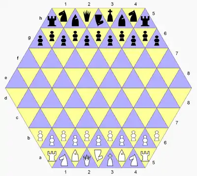Triangular chess refers to a group of chess variants played on boards composed of triangular cells.
