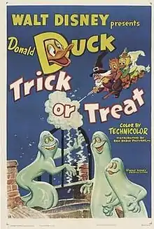 Trick or Treat is a 1952 animated short film produced by Walt Disney Productions and released by RKO Radio Pictures.[1] The cartoon, which takes place on Halloween night, follows a series of pranks between Donald Duck and his nephews with Witch Hazel. The film was directed by Jack Hannah and features the voices of Clarence Nash as Donald and his nephews, and June Foray as Hazel.