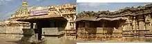Trikuteshwara temple is a Hindu temple dedicated to Shiva. The carved temple[1][2] is in the town of Gadag, 50 km southeast of Hubli-Dharwad, in Karnataka, India. It is dedicated to Shiva and has three lingas mounted on the same stone. There is a shrine dedicated to Saraswathi in this temple and it has carved columns.