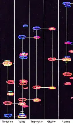 Triple resonance experiments are a set of multi-dimensional nuclear magnetic resonance spectroscopy (NMR) experiments that link three types of atomic nuclei, most typically consisting of 1H, 15N and 13C. These experiments are often used to assign specific resonance signals to specific atoms in an isotopically-enriched protein. The technique was first described in papers by Ad Bax, Mitsuhiko Ikura and Lewis Kay in 1990,[1][2] and further experiments were then added to the suite of experiments. Many of these experiments have since become the standard set of experiments used for sequential assignment of NMR resonances in the determination of protein structure by NMR. They are now an integral part of solution NMR study of proteins, and they may also be used in solid-state NMR.[3][4]