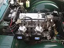 In 1968 the TR4A's venerable four-cylinder engine was replaced by Triumph's 2.5-litre straight-6. In the UK and most other markets it was equipped with Lucas fuel injection and called the TR5. In the United States price pressure and tighter emissions standards resulted in an otherwise identical but much less powerful car being fitted with twin Zenith-Stromberg carburettors, called the TR250.