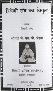 Triveni Sangh was a caste coalition and political party established in Shahabad District of Bihar in pre-independence India to voice the political solidarity of "middle peasant castes" as well as to carve a space in democratic politics for the lower castes.[1] The date of formation of the Triveni Sangh has been variously stated. Some sources have said it was the 1920s but Kumar notes recently discovered documentation that makes 1933 more likely,[2] while Christophe Jaffrelot has said 1934.[3] The leaders associated with the formation of this front were Yadunandan Prasad Mehta, Shivpujan Singh and Jagdev Singh Yadav.[4]
