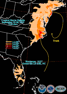 - "Tropical Storm Ophelia (September 21-26, 2023) rainfall map". Tropical Cyclones in 2023. Weather Prediction Center. 2023-10-17. Retrieved 2023-10-18.