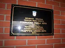 Serbian together with the Serbian Cyrillic alphabet is the second co-official language within the boundaries of the municipality including all settlement except predominantly Croat one Ćelije.[1] The statute guarantees that Serbian Cyrillic alphabet will be used in text of seals and stamps, on plates of representative, executive and administrative bodies of the municipality, as well as on those of legal entities with public authority.[1] Pre-school education for the Serb community is organized and conducted in Serbian and Cyrillic according to the local statute.[1] Elementary education is provided in Serbian as well.