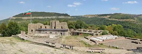 Tsarevets (Bulgarian: Царевец, romanized: Tsarevets) is a medieval stronghold located on a hill with the same name in Veliko Tarnovo in northern Bulgaria. Tsarevets is 206 metres (676 ft) above sea level.[1] It served as the Second Bulgarian Empire's primary fortress and strongest bulwark between 1185 and 1393, housing the royal and the patriarchal palaces, and it is also a popular tourist attraction.[2]